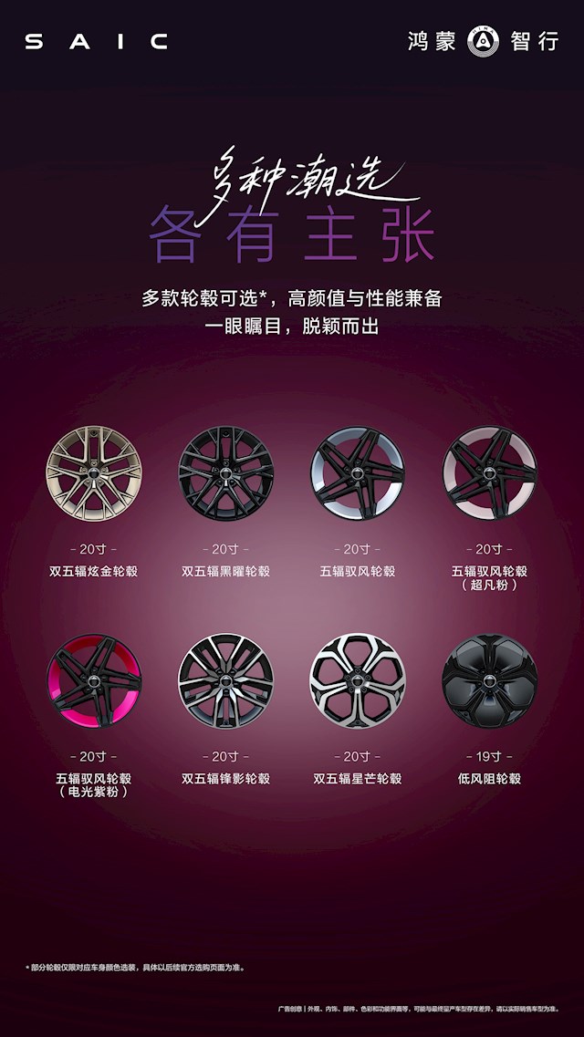 车型尺寸也保持一致,双车长宽高均为5036/1976/1465mm,轴距3000mm,和小米SU7类似,也定位为C级轿车,同时可选非常多样的轮圈。